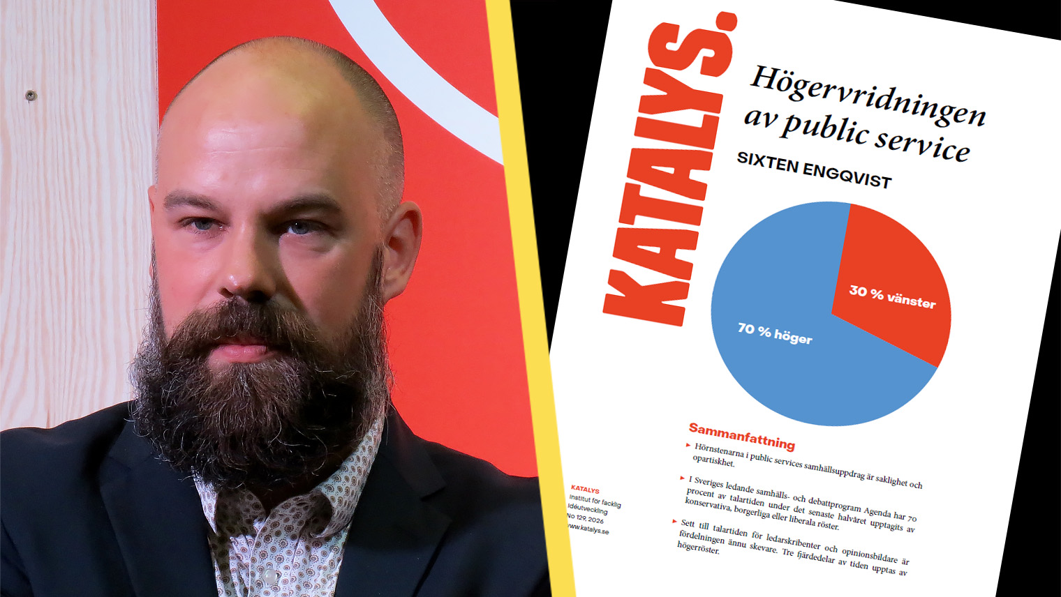 En ny rapport från den vänsterfackliga tankesmedjan Katalys påstår att programmet Agenda på SVT domineras av ”höger röster”. Denna kritik har mött starkt motstånd, där bedömare menar att rapporten bygger på tvivelaktiga definitioner och snäva mätmetoder. Istället för att reflektera verkligheten verkar den snarare spegla avsändarens politiska ståndpunkter.
