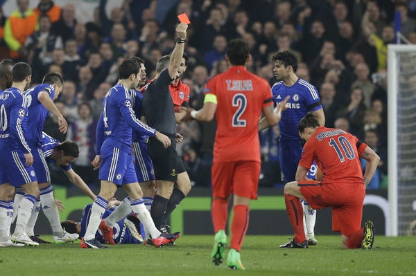 Under mötet i Champions League 2015 mellan Paris Saint-Germain och Chelsea fick Zlatan Ibrahimovic ett direkt rött kort efter ett ingripande som tolkades som allvarligt från domarsidan. Utvisningen chockade både fans, spelare och experter då den påverkade matchbilden betydligt.