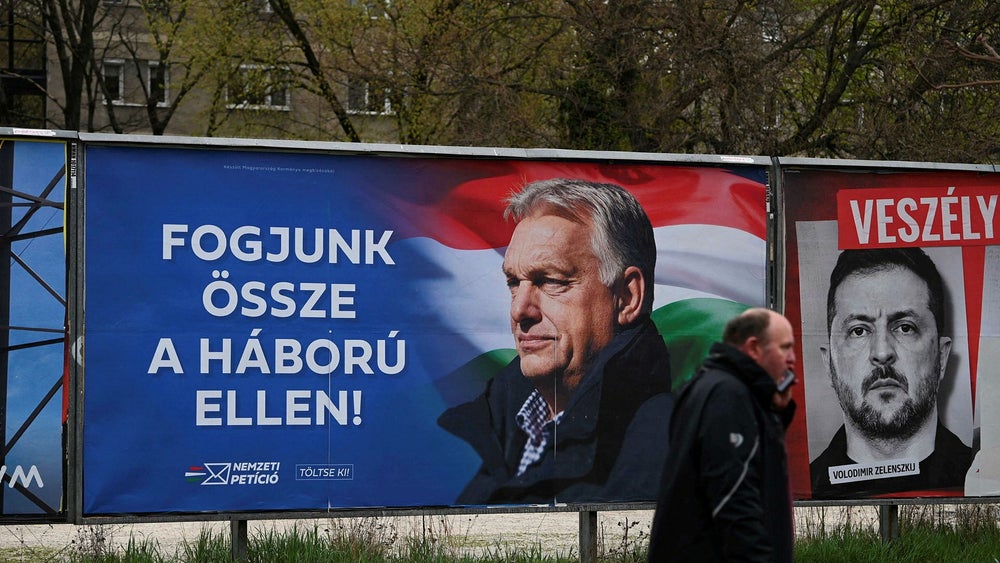 Orbán använder situationen som valstrategi och målar upp ett hot om att Ungern kan dras in i kriget om EU:s politik inte stoppas. Han stämplar sin motståndare Péter Magyar som ”EU:s nickedocka”. Magyar toppar opinionsmätningarna och fokuserar på korruptionsanklagelser inom Orbáns krets.
