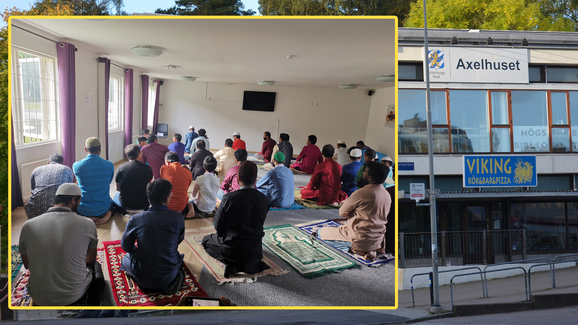En granskning av Doku avslöjar att Frölunda moské under flera år har bedrivit fredagsbön och koranskola i Axelhuset vid Axel Dahlströms torg i Göteborg. Detta har skett med stadens godkännande och i lokaler som även rymmer ett allmänt bibliotek.
