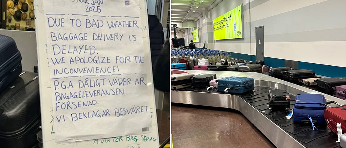 Flera väskor stod utomhus eftersom vägarna mellan flygplanen och bagagehallen inte var plogade, enligt flygbolagspersonalen. Informationen till resenärerna var däremot nästan obefintlig, utan ljudutrop eller uppdaterad personal.