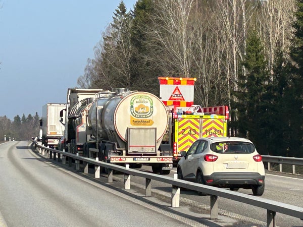 Räddningstjänsten och polis är på plats och arbetar för att få bort fordonet och säkra olycksplatsen. Trafikverket varnar för att köerna beräknas kvarstå under den närmaste tiden, vilket påverkar alla som färdas längs denna viktiga transportväg.