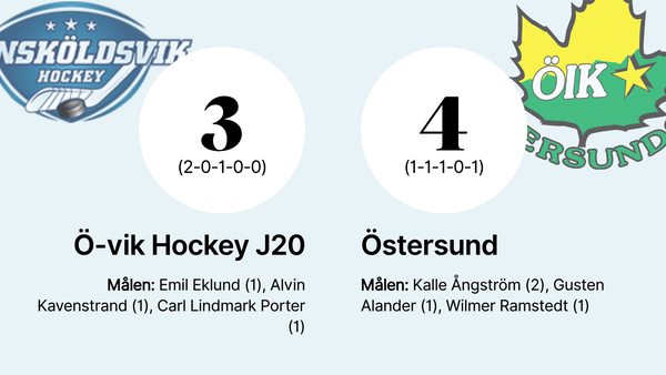 Östersund tog hem en dramatisk seger borta mot Ö-vik Hockey J20 efter en intensiv och jämn match som avgjordes först i straffläggningen. Det här resultatet ger Östersund ett rejält lyft och visar på lagets starka psyke under press.