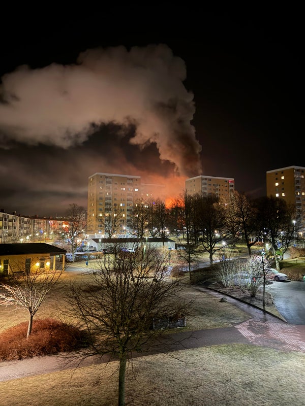 Räddningspersonal bekräftar att byggnaden är helt förstörd och att det inte finns någon risk för spridning till närliggande stugor eller skogsområden. Området är nu avspärrat för säkerhets skull och utredning pågår för att fastställa brandorsaken.