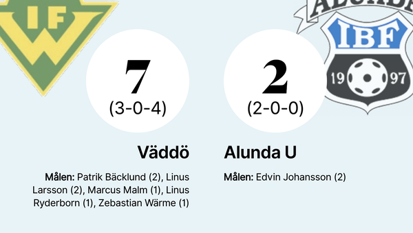 Väddö vann med 7–2 mot Alunda U, ett resultat som sätter press på Alunda U inför kvalet och visar på Väddös starka comeback från förra matchens förlust.