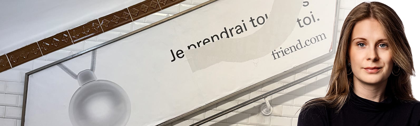 I Paris tunnelbanor hänger affischer med reklam för ett vitt halsband som påstår sig vara en vän. Vid första anblick kan det vara svårt att förstå varför de förbi passerande reagerar negativt. Men när man ser texten på affischen, som säger ”Jag tittar på alla avsnitt med dig” eller ”Jag tar metron med dig”, blir det tydligare.