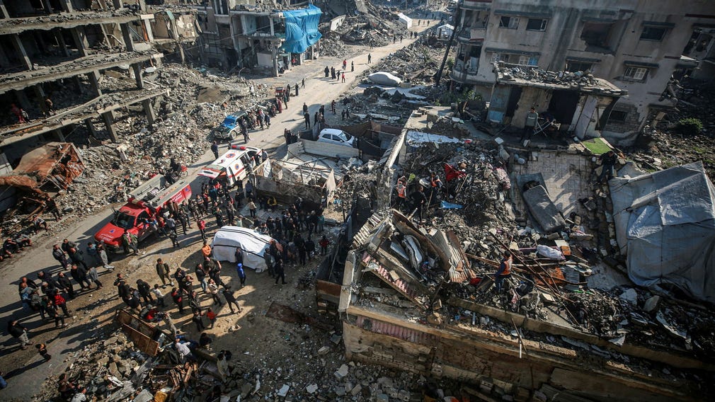 En annan journalist, Mohammed Abu al-Qumsan, vittnar om att hans fyravåningshus också kollapsade i Sheikh Radwan. ”Vi hörde ett knäppande ljud och drog oss ut på gatan. Under tio sekunder lät det som en enorm explosion”, säger han. Hans svägerska och hennes barn befann sig i källaren men kunde räddas av Abu al-Qumsan och grannar.